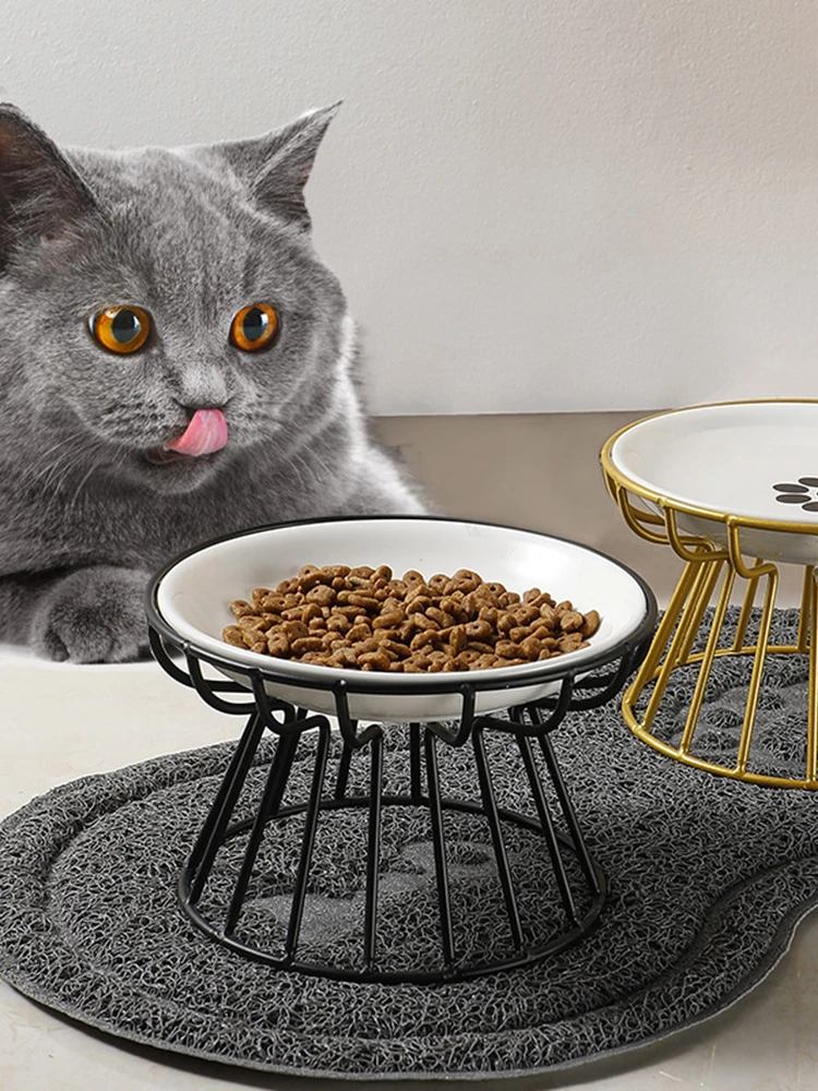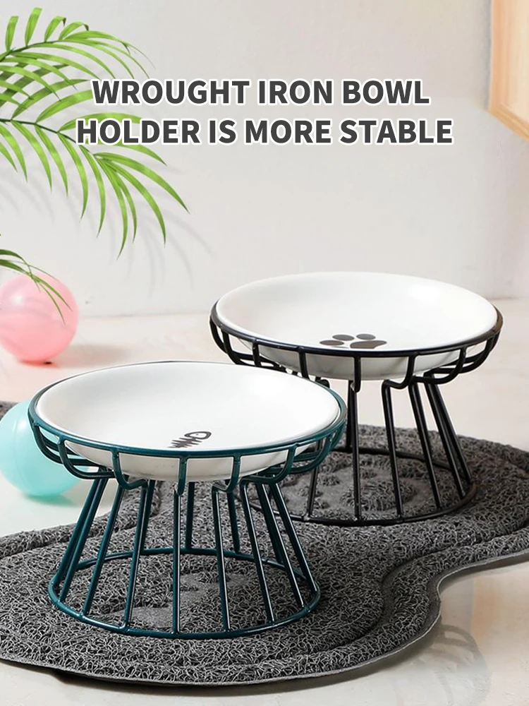 Ceramic Cat Food Bowl Wide Safe Pets Water Food Bowls Non Slip Shallow Dish for Kitten Puppy Pet Food Water Feeding